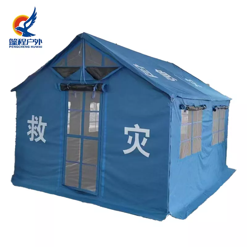 Pengcheng आउटडोरको 12㎡ आपतकालीन विपद् राहत पाल मुख्य रूपमा दुई प्रकारमा वर्गीकृत गरिएको छ: 12㎡ एकल आपतकालीन राहत पाल (राष्ट्रिय मानक/गैर-मानक) र 12㎡ कपास आपतकालीन राहत पाल (राष्ट्रिय मानक/गैर-मानक)। 3.2m (चौडाई) × 3.7m (लम्बाइ) × 1.75m (eave उचाइ) × 2.67m (चरम उचाइ) को आयामहरूसँग, सबै पालहरूले प्रबलित स्टिल संरचनाहरू सहित उच्च-ग्रेड वाटरप्रूफ र ज्वाला-प्रतिरोधी कपडा अपनाउँछन्, 50% ले स्थायित्व बढाउँछन्। मोड्युलर डिजाइनको विशेषता रहेको, तिनीहरू मर्मत गर्न र द्रुत रूपमा भेला हुन सजिलो छन्।